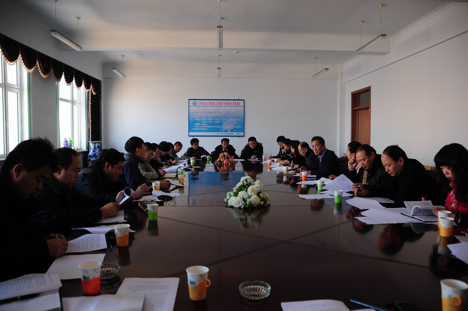 在学校504会议室,工会主席吕晓辉主持召开了第二届教代会主席团会议,座谈讨论学校十二五规划。工会副主席卢茶玫、吴宝柱和第二届教代会主席团部分成员参加了座谈会。