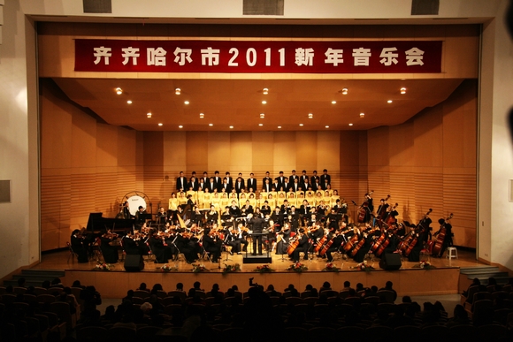 琴瑟奏佳音,妙曲迎新年。12月29日晚,由齐齐哈尔市委宣传部、齐齐哈尔大学主办,齐齐哈尔大学交响乐团担纲演出的“齐齐哈尔市2011新年音乐会”在我校音乐厅隆重上演,为鹤城人民献上了文化的盛宴和新年的祝福。