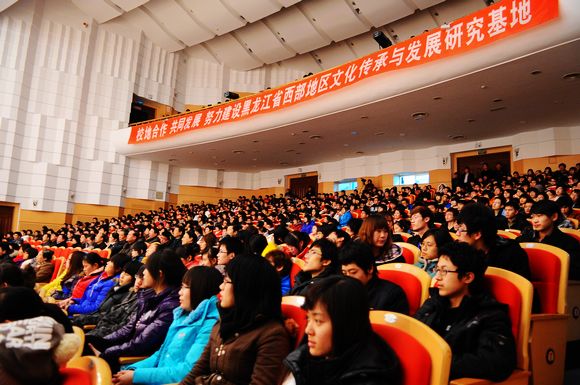 上善若水,化成天下。近年来,齐大开展“百名专家百场报告进校园”活动,提高校园文化层次,打造学术文化精品,仅一年多的时间就邀请著名学者和专家为广大师生举办学术讲座160余场。据统计,1996 年—2010 年,齐齐哈尔大学共举办的省、全国和国际学术会议37次,受聘出国讲学、访问学者、进修学习、国际间合作研究人员往来180人次。齐齐哈尔大学通过以江桥抗战研究为核心的一系列历史文化研究与实践活动,在黑龙江省西部文化的定位、发展以及齐齐哈尔市的区域文化建设中书写了华彩篇章,同时,在齐齐哈尔城市史学考证、历史文化名城创建、流人文化研究、鹤文化研究、区域文化建设等课题中扮演了重要的角色。学校许多研究成果中的若干政策建议被政府相关部门采纳,为党和政府的决策服务方面,提供了一大批高质量的研究咨询报告,为高品位区域文化引领和传承基地的建设提供思想保证和精神动力,已经成为传播黑龙江省西部地区优秀文化的重要场所和交流借鉴进步文化的重要窗口。