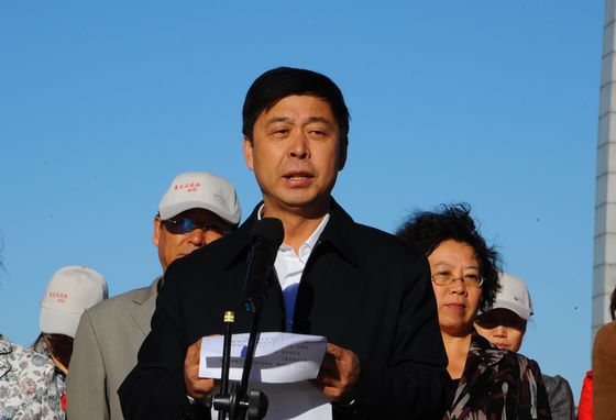 我校校长马立群向参加“纪念‘9·18’事变暨江桥抗战79周年大学生重走抗战路活动”的师生发出“启程”号令。