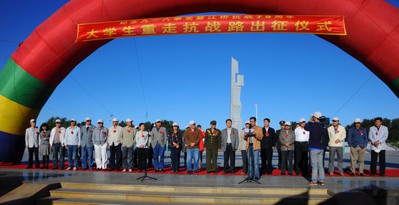 仪式最后,我校校长马立群宣布“大学生重走抗战路队伍启程”。随着我校校长马立群发出“启程”的号令,参加此次“重走抗战路”活动的全体师生踏上了征程。