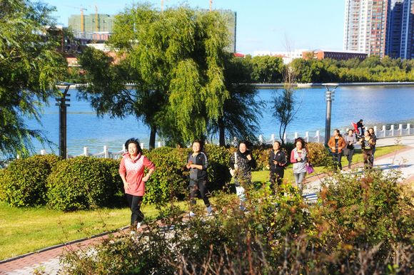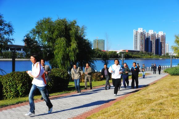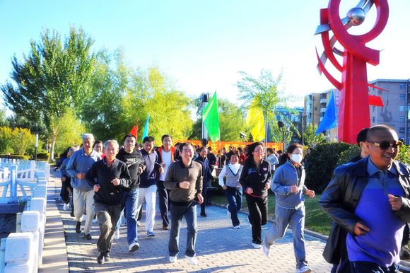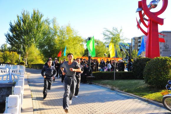 9月29日,我校中区东门外劳动湖健身广场人头攒动,彩旗飘扬,一年一度的迎国庆环湖长跑比赛在这里隆重举行,全校800余名教职员工参加了比赛。