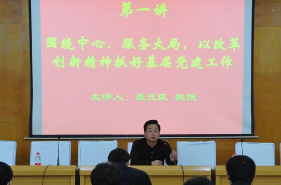 开班式后,校党委副书记盖元臣同志从提高认识、增强做好支部工作的自觉性,明确任务、增强做好支部工作的针对性,改革创新、提高支部工作的层次和水平等三个方面出发,作了题为“围绕中心、服务大局,以改革创新精神抓好基层党建工作”的首场讲座。
