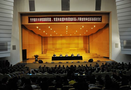 10月27日下午,“齐齐哈尔大学党建带团建、党团共建暨共青团组织深入开展创先争优活动启动仪式”在音乐厅隆重举行。