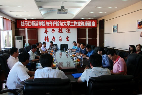 7日下午14时,我校同牡丹江师范学院工作交流座谈会在中区行政楼504会议室召开。副校长郑喜群出席会议,我校教务处、财务处、实践教学与设备管理处、高教研究与评估中心等职能部门及有关学院领导参加座谈会。