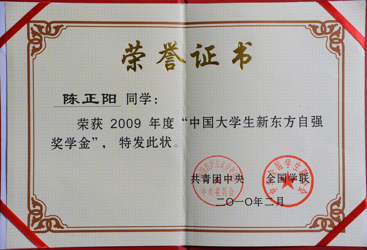 为弘扬中华民族传统美德,促进社会和谐,团中央学校部、全国学联秘书处于2009年12月至2010年2月组织开展了2009年度寻访“中国大学生自强之星”活动和“新东方西部特困大学生专项助学金”候选人推荐活动。经过校级、省级推荐以及评委会的评定,我校理学院数本07-1班学生陈正阳荣获“2009中国大学生自强之星提名奖”和总额为2000元的2009年度“中国大学生新东方自强奖学金”。