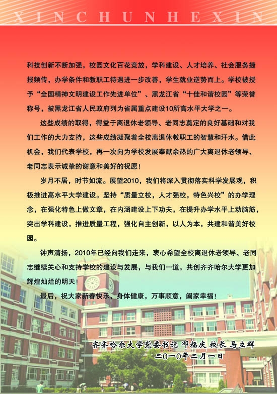 致全校离退休教职工的新春贺信