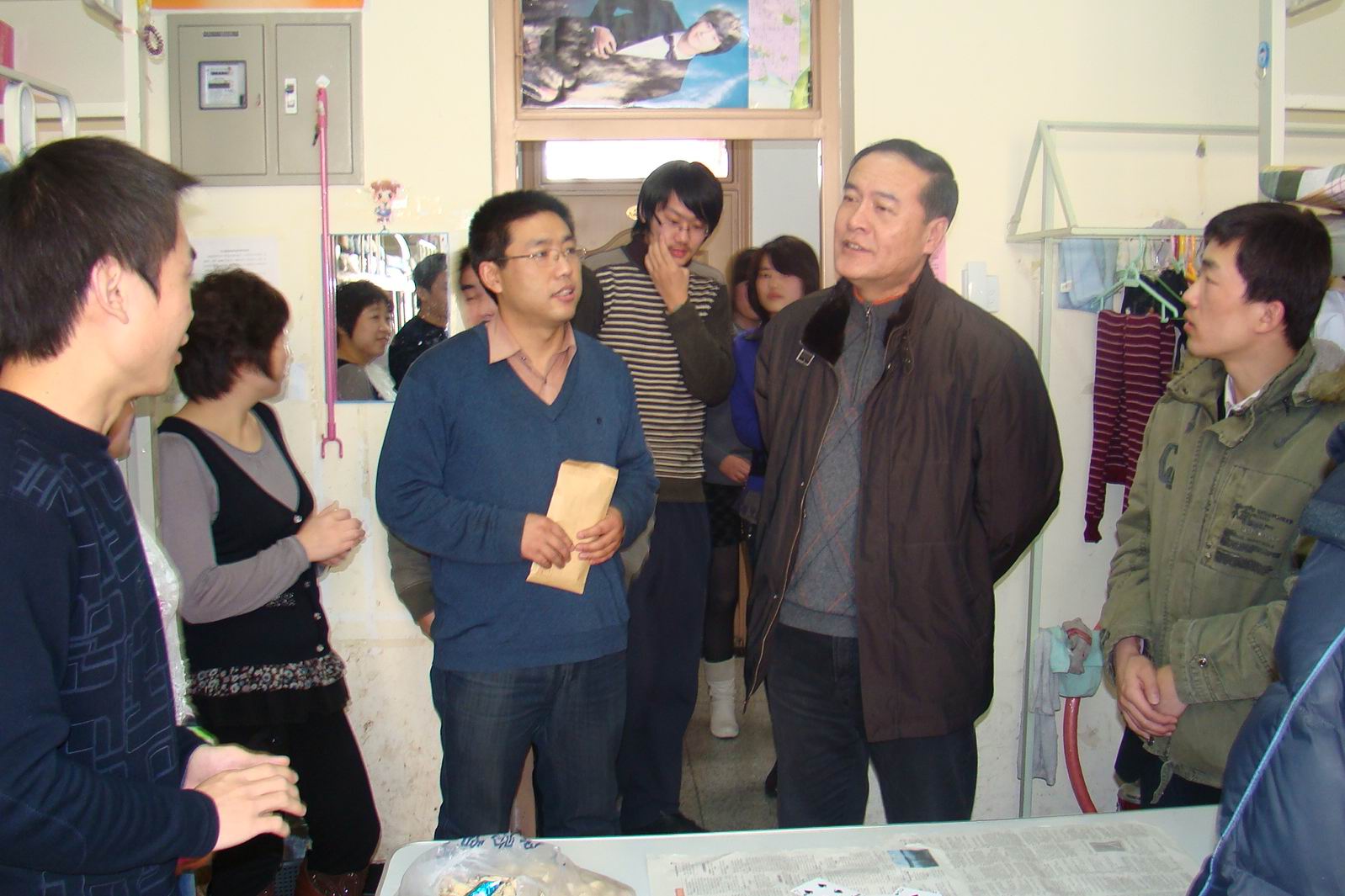 学生工作处的老师与学生们在寝室中亲切交谈,询问他们在假期的学习与生活情况,并叮嘱他们注意安全,互相帮助,要给父母、长辈和老师打个电话,发条短信拜年。之后老师与学生们进行了扑克比赛活动。