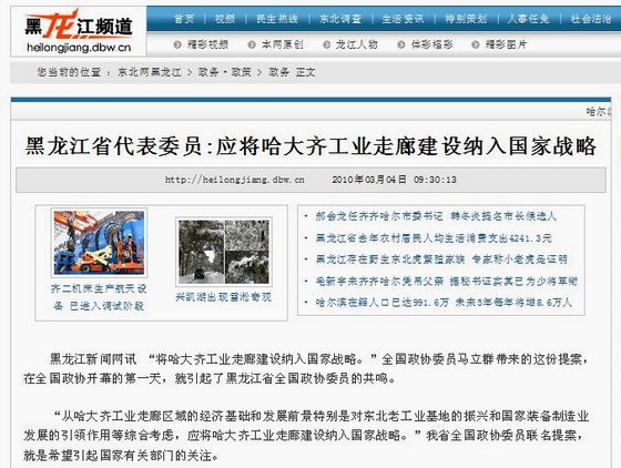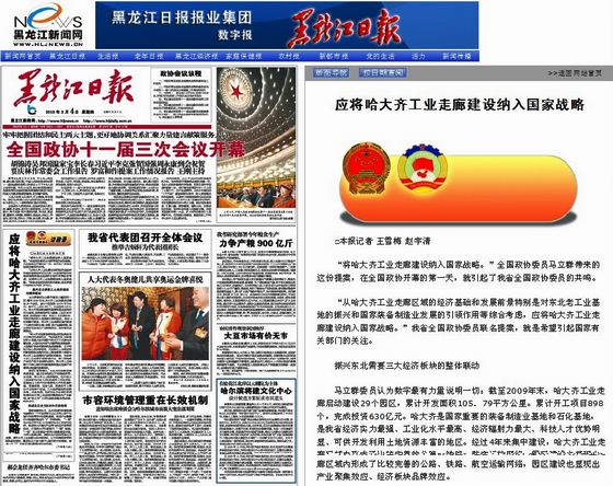 新民网、中国企业新闻网、财讯网等多家网络媒体也对《黑龙江日报》题为《黑龙江省代表委员:应将哈大齐工业走廊建设纳入国家战略》的报道予以转载。
