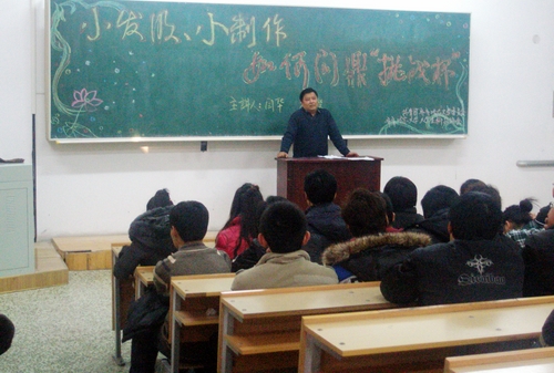 12月5日下午,学校团委特邀计算机与控制学院闫华教授为备战2011年第十二届“挑战杯”竞赛的申请科技制作类科研立项的学生做了题为《小发明、小制作如何问鼎“挑战杯”》的科技讲座。闫华教授向学生们介绍了“挑战杯”竞赛的历史由来及现实意义,鼓励同学们要努力培养创新思维,从点滴做起,逐步实现从小发明、小制作开始到创作出科技含量高、先进性强、实用性强的科技作品。他还采取师生互动形式,现场解答了学生提出的一些疑问。