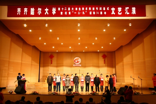 12月10日,在全校师生的积极参与和共同努力下,历时一个月的以“携手科技创新 建设文化校园”为主题的我校第十二届大学生学术科技节,圆满完成了各项工作任务,胜利落下帷幕。10日下午14时30分,我校第十二届大学生学术科技节闭幕式暨纪念“一二·九”运动七十四周年文艺汇演在音乐厅隆重举行。