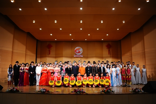闭幕式结束后,与会校领导和全体师生一起观看了纪念一二?九运动七十四周年文艺汇演。