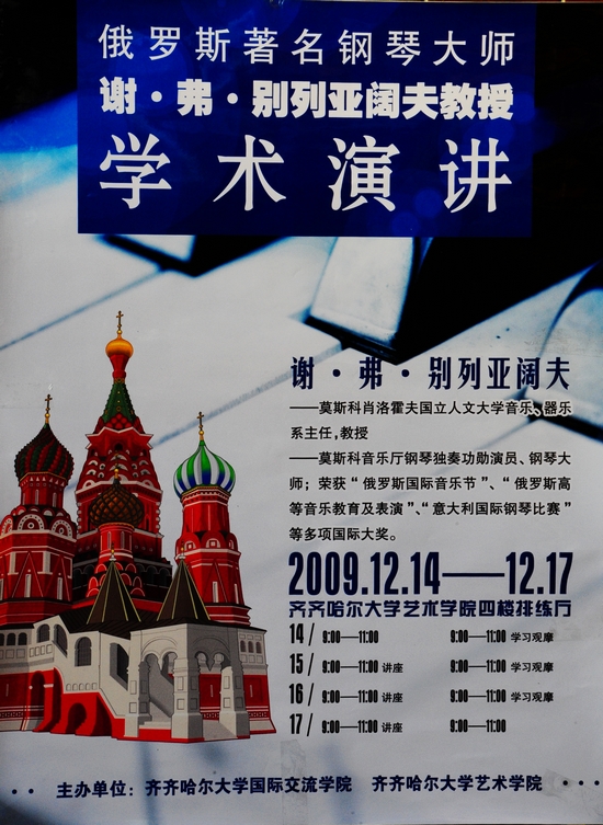 本届钢琴大师班的举办,是我校继成功举办“俄罗斯指挥大师班”、“黑龙江省俄语风采大赛”、“黑龙江省第二届俄罗斯大学生汉语大赛”和“教育部2009中俄大学生艺术联欢节”等系列活动之后,主持举办的又一项“中俄文化年”重要活动。