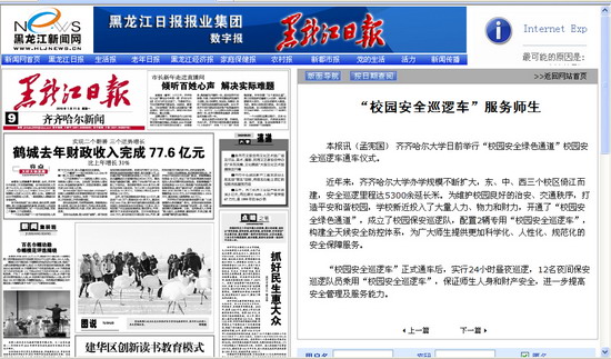 编者按:2009年12月23日下午,我校举行了校园安全绿色通道通车仪式,新购置的两辆校园安全巡逻车正式投入了使用。1月11日的黑龙江日报刊发了此消息,现转载如下。