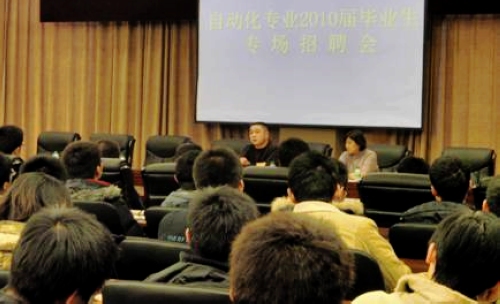 计算机与控制工程学院高度重视学生的就业工作,积极筹划,抢抓契机,为2010届毕业生就业工作开好局。就在此次就业指导讲座结束后,应邀回校颁发奖励基金的谷闯先生受北京中电兴发科技有限公司、北京四海实拓科技有限公司、北京时进展望科技有限公司、北京世纪实拓科技有限公司、北京智建联合科技发展有限公司等多家用人单位委托,在计算机与控制工程学院举行了小型人才招聘会,热情回答了同学们相关就业咨询。小型专场人才招聘会现场气氛热烈,一些学生们将自己的简历投给了有意向的公司,有的还达成了意向性就业协议,为我校学生与用人单位搭建了双选平台。(图片来源:计算机与控制工程学院)