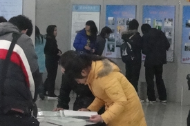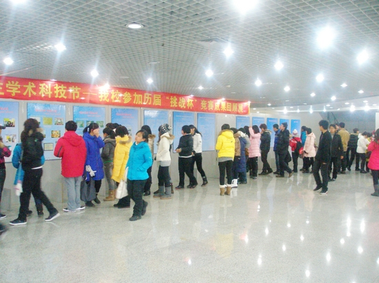 此次“挑战杯”竞赛成果回顾展,吸引了大批在校师生前来观看,各种不同类型的展品通过图片的形式呈现在人们的面前。现场科技氛围浓厚,那么多激动人心的历史场景和难忘的画面,被一张张图片定格为永恒的瞬间;那么多激情燃烧的峥嵘岁月和闪光的日子,被一段段文字书写成不朽的记忆。学子们三五成群地在一起讨论,分享着学长们的成功与喜悦。