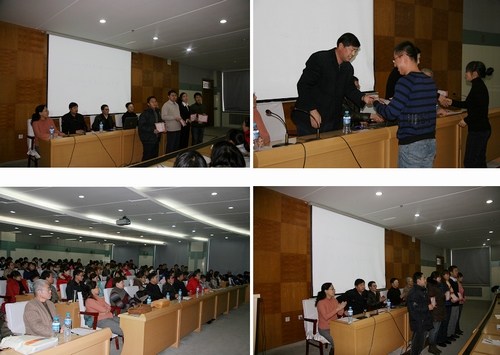 校研究生处副处长滕永富、社科部主任何春岐、人文学院党委书记卜春江、学院院长王则远、副院长邢丽雅为获奖研究生颁奖。