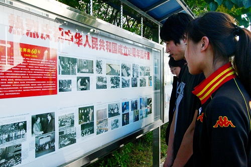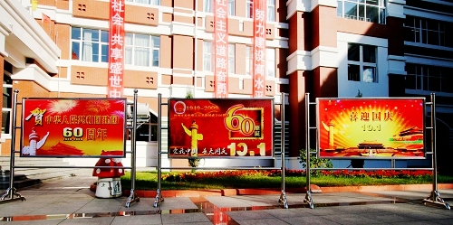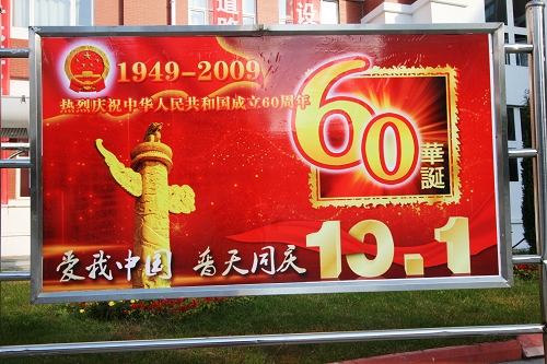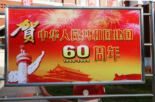 学校党委宣传部和后勤处等部门积极行动,扮靓校园贺国庆 。“庆祝中华人民共和国成立60周年专题图片展”主题鲜明,突出了思想性和教育性;“和谐盛世,国泰民安;中华儿女,普天同庆” 、“以建设高水平大学的实际行动向祖国60华诞献礼!”等30余条幅、标语、彩带将校园楼宇装扮得分外喜庆、热烈,洋溢着浓浓的节日气氛,尽情抒发对祖国母亲的美好祝福,表达了全校师生贯彻落实高教强省战略、建设省属重点高水平大学的坚强决心。