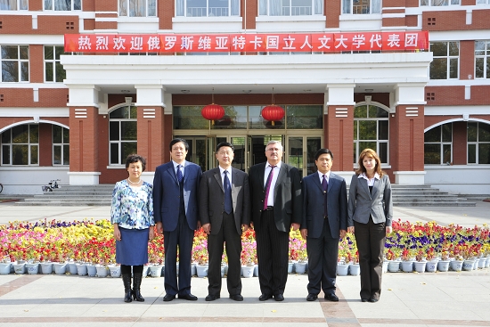 10月16日,俄罗斯维亚特卡国立人文大学校长B.C. 纽什科夫、外事处处长伊琳娜女士一行来访我校。