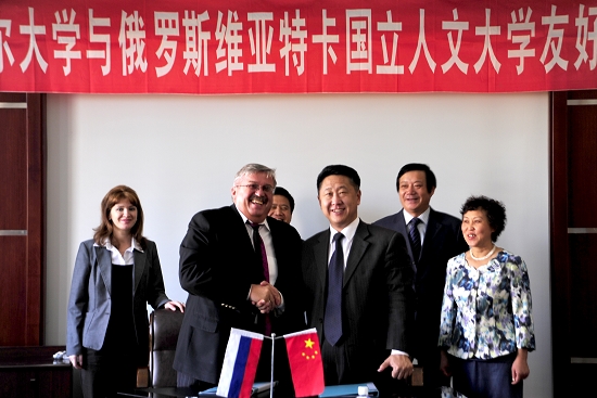 今年5月14日,马立群校长率我校代表团访问了俄罗斯维亚特卡国立人文大学,并参加了该校建校95周年庆典活动。