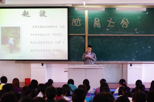 轻工纺织学院运用多媒体技术和鲜活的素材举办了“‘轻纺之星’事迹报告会”,以吴双全、赵波、葛兴婵、邹梨花、朱明涛等荣获“轻纺之星”同学的感人事迹为教育素材,从独特的视角、新颖的切入点对学生进行人生观、价值观的典型教育。通过视频短片播放和现场连线,让学生引导学生、自己教育自己。
