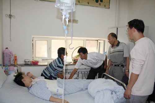 应用技术学院全体师生为身患重病的计应061班王欢同学爱心捐款27269.50元。该学院党委书记张宪忠,副书记、副院长马金权等带着全院师生的爱心和祝福,赴哈医大二院将捐款送到了王欢的手中。