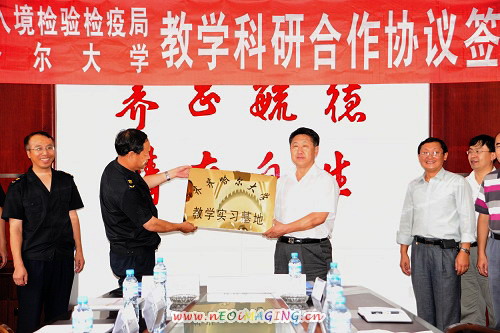 根据合作协议,我校在齐齐哈尔市出入境检验检疫局建立“齐齐哈尔大学教学实习基地”。马立群校长为该局授牌。