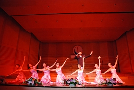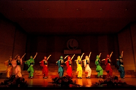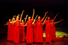 闭幕式后,与会领导和现场师生们一起观看了精彩的文艺演出。参加演出的节目均由各学院精心选送,是同学们自编自演的原创作品。这些作品巧妙地将校园生活同讴歌改革开放、歌唱伟大祖国相结合,将新一代大学生的成长成才同创建三型校园、构建和谐社会相结合,突出反映了我校校园文化建设的最新成果,反映了同学们乐观向上、不断进取、勤奋踏实、自信自强的精神面貌。演出结束后,与会领导同参演人员合影留念。(摄影:周间芬)