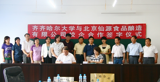 我校与北京仙源食品有限公司校企合作成功签约,并达成关于“以豆渣为原料固态发酵生产β-胡萝卜素的产业化研究项目(意向性)协议”,为“科研实践基地”和校企合作“调味品研发中心”揭牌,是我校学习实践科学发展观贯、彻落实高教强省战略的又一实际举措,也是进一步推进产学研相结合、加快科研成果转化、以实际行动服务社会的生动体现。