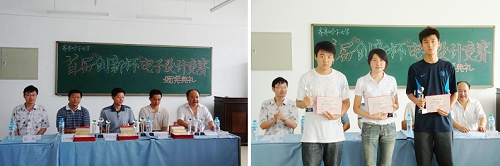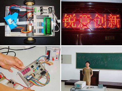 计算机控制与工程学院自动化专业06级张斌等3人设计的“定位机器人”荣获特等奖,计算机控制与工程学院自动化专业07级李启龙等3人设计的“32*128电子公告板”等荣获一等奖,计算机控制与工程学院自动化专业李治霞等3人设计的“单片机温度检测计”等荣获二等奖,来自计算机与控制工程学院、通信与电子工程学院、理学院的9名同学分获三等奖和鼓励奖。