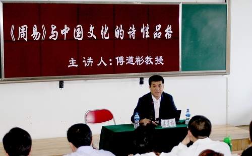 领略学者魅力,沐浴学术洗礼。名列“五经”之首的《周易》,是中华文化的重要源泉,其意象化的表述方式,体现了我们民族的根深蒂固的诗性智慧及其文化品格。傅道彬教授由《周易》说起,从《周易》到《老子》、《庄子》,从《天净沙·秋思》到《红楼梦》及当代文学,纵论古今,深入浅出,文史哲融会贯通,诗思文气韵一体,场上报告精彩,场下气氛热烈。围绕着“《周易》与中国文化诗性品格”这一主题,傅道彬教授作了深入而生动的阐述。他深厚的文学造诣、渊博的学术底蕴、创新的学术理念、求实的学术品格、幽默的学术话语赢得了与会师生的思考与好评。