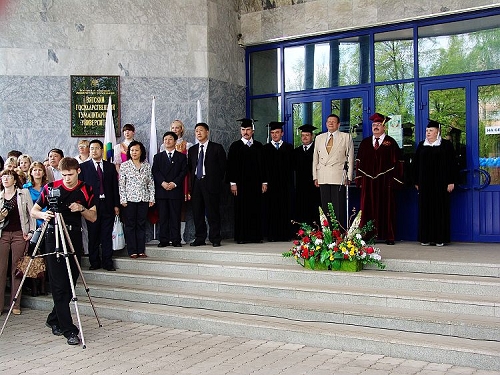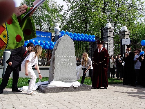 马立群校长一行乘飞机于14日凌晨1:00到达基洛夫机场,维大外事处处长伊琳娜到机场迎接,到达宾馆时已是凌晨3:00,第二天9:00将参加维大建校95周年纪念碑揭幕仪式。