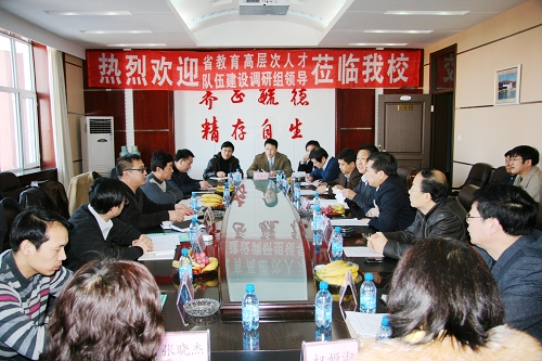 我校校长马立群代表学校对以沈郦夫处长为组长的省教育高层次人才队伍建设调研组来我校调研表示热烈欢迎与衷心感谢。他说,这次省有关部门来我校进行专题调研,充分体现了省委、省政府对高校高层次人才队伍建设工作的高度重视,我们对此表示衷心感谢。省教育厅师资处调研员、副处长曲嘉维主持了调研座谈会。