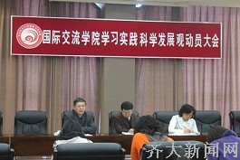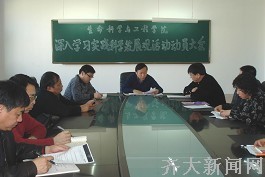 社会科学教研部表示要借学习实践科学发展观活动的东风,充分发挥思想政治理论课在大学生思想政治教育中的主渠道作用,用我们的实际行动,为建设高水平大学做出应有的贡献。
