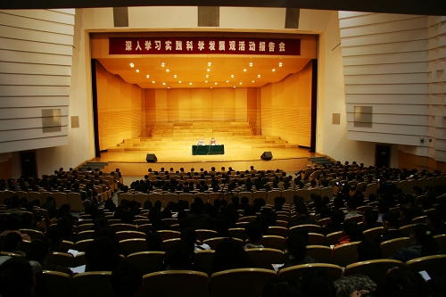 4月15日下午1:30分,齐齐哈尔大学和齐齐哈尔医学院在齐齐哈尔大学音乐厅联合举办深入学习实践科学发展观活动报告会。