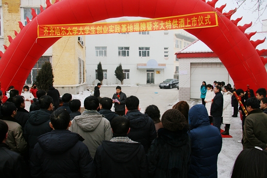 12月30日上午,齐齐哈尔大学大学生创业实践基地暨“齐大特供酒”上市揭牌仪式在学校中区学生活动中心隆重举行。