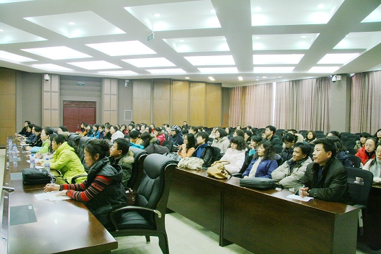 外语学院副院长闫涛主持会议并向与会人员介绍了牛保义教授的学术与科研情况,科技处处长徐群、研究生处处长张文治、外语学院党委书记冯觉华、外语学院副院长葛利友、张坤,英语系教师,2007、2008级硕士研究生参加了会议。