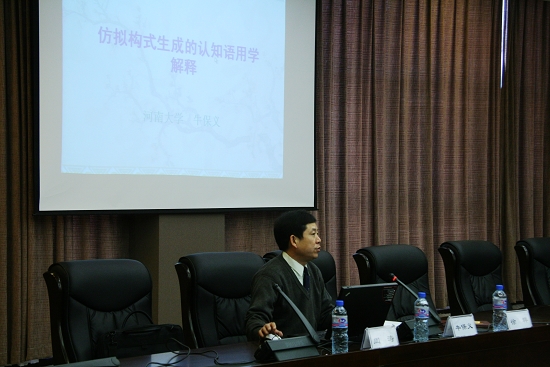 聘任仪式结束后,牛保义教授为外语学院师生作了题为“仿拟构式生成的认知语用学阐释”的首场学术报告。在为期一周的时间里,牛保义教授将为外语学院英语专业师生作题为“英语形容词性复合词的语义概念化研究”等学术讲座,参加学术交流座谈会并将介绍认知语法理论方面的有关学术研究情况。