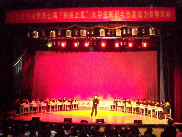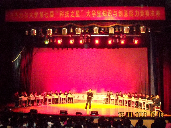 第十一届大学生科技节特色活动之第七届“科技之星”大学生知识与创意能力竞赛决赛,于11月28日在中区文化宫隆重举行。来自我校14个学院的十四支代表队参加了此次决赛。我校1400余名学生观看了本次决赛。