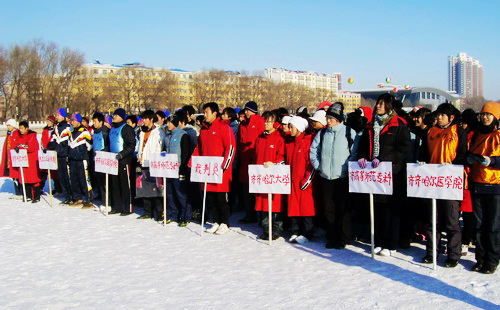 本届雪地足球赛上,共有来自齐齐哈尔医学院、黑龙江省交通职业技术学院、齐齐哈尔高等师范专科学校和我校在内的七支球队参赛。为期三天的赛程中,这七支球队都表现出了扎实的足球技能和良好的体育风尚,为来自各学校及社会各届的观众奉献了精彩的比赛。通过激烈的角逐,我校选派的男、女代表队分别摘得冠军。我校代表队的精彩表现,给兄弟院校的对员和观众留下了深刻的印象。