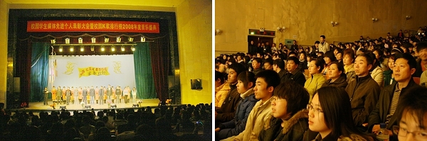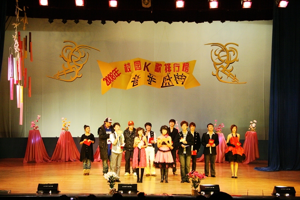表彰会结束后,“校园K歌排行榜”2008年度音乐盛典正式拉开帷幕,我校广播电台“校园K歌排行榜”栏目倾力打造的“校园明星”为现场观众奉献了一场音乐盛宴。
