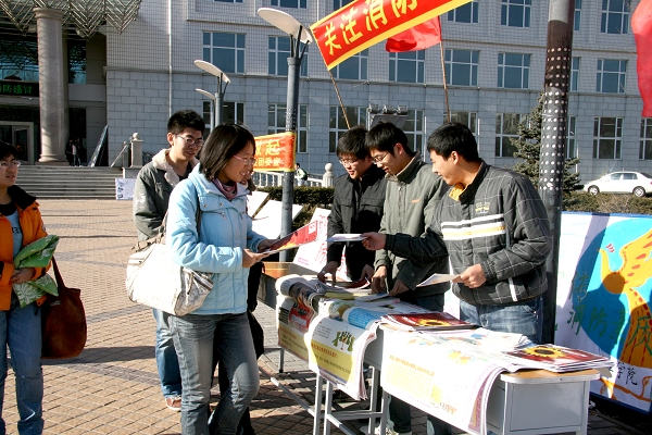 9日中午,校保卫处及大学生消防志愿者协会等有关部门和学生组织还在西主广场举行了消防安全知识手册发放活动,受到现场路过的师生们的关注与欢迎。