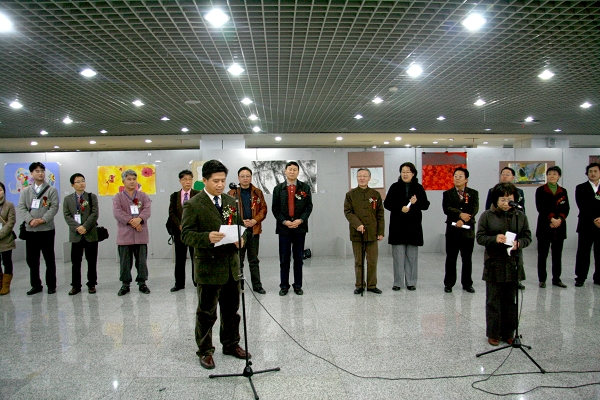 韩国朝鲜大学校美术大学美术部主任金锺京教授、我校艺术学院宗明明院长分别致辞。出席开幕式的领导和嘉宾共同为展览开幕剪彩。