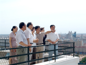 在留学生公寓大楼,尹晓岚实地考察了公寓套间、国际会议中心和多功能厅,并登上位于第26层的观光平台俯瞰我校环湖校园风光和齐市全景。尹晓岚对我校的发展建设给予了高度评价。