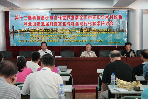 本次会议主题为“科技进步与传统文化;科技文化与科学发展观”。中国科学院研究生院博士生导师孟建伟教授、武汉理工大学杨怀中教授、清华大学刘兵教授和卢风教授、华中科技大学韩东屏教授、华南理工大学彭纪南教授、东南大学吕乃基教授、黑龙江中医药大学程伟教授、黑龙江大学周东启教授、哈尔滨师范大学孙慕天教授、齐齐哈尔大学王树松教授等专家学者分别在大会上作了主题发言。