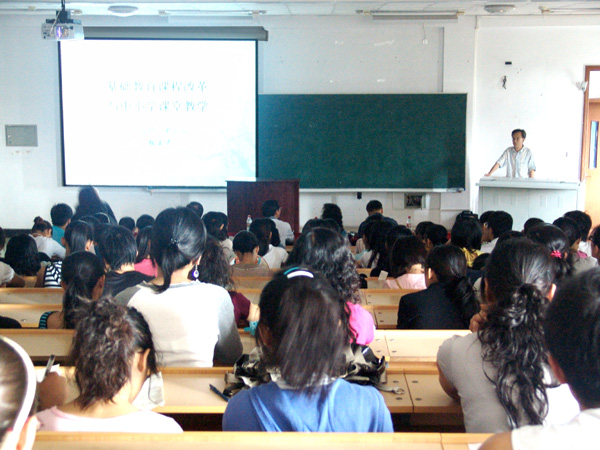 张玉民教授在讲座中主要介绍了我国基础教育课程改革的背景,解读了基础教育课程改革的具体目标,介绍了新课程实施带来的课堂教学新变化。张教授还结合新课程实际课堂教学的案例,介绍了如何落实新课程的三位课程目标,实现学生主动探究合作的学习,以及建构主义学习理论指导下的新的课堂教学结构。
