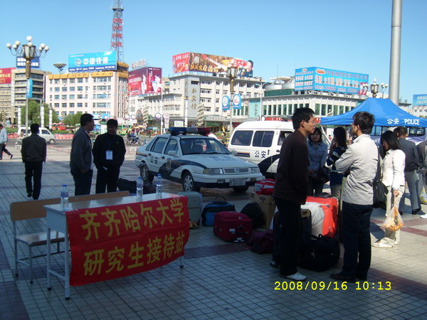 16日7:30—17:00,我校研究生处安排专人在齐齐哈尔火车站设立了迎新接待站,安排了专程迎新接站车,全程负责做好迎新报到入学接待工作。