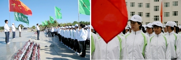 9月17日,我校军训团组织了“军歌嘹亮 青春激扬”—2008级新生军训歌咏比赛。全体参训学生精神饱满,士气高昂,用他们整齐的队列、飒爽的英姿、嘹亮的歌声接受军训团首长的检阅。《国歌》、《歌唱祖国》等洋溢着爱国主义激情的歌曲在运动场上飞扬,对广大青年大学生进行了一次爱国主义、集体主义和民族精神的生动教育。