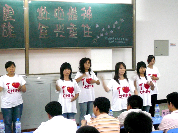 没有耀眼的星光,没有华丽的装饰,但他们——“弘扬抗震救灾精神,勇担民族复兴重任”主题演讲比赛的选手们却用质朴的语言、真挚的感情与执着的追求谱写了一首催人奋进、感人至深的抗震救灾赞歌,表达了对灾区人民无尽的祈祷与温馨的祝福。
