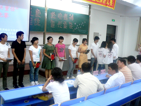 最后,校团委赵振华老师代表评委为本次演讲比赛做了总结,并鼓励大学生要弘扬抗震救灾精神,勤奋刻苦学习,坚定理想信念,勇于艰苦创业,培养高尚品格,要在今后的学习工作中为灾区重建、民族振兴付出实际行动。评委们一致认为:本次“弘扬抗震救灾精神,勇担民族复兴重任”主题演讲比赛,抒发了齐大学子心系祖国,情系灾区的情怀,体现了当代青年高度的社会责任感和主人翁意识,振奋人心,鼓舞士气,凝聚力量,收到了良好的教育效果。